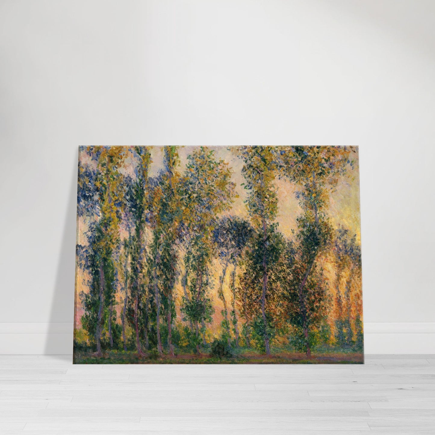 Introducing the Claude Monet - Poplars at Giverny, Sunrise Canvas Art Print, a true masterpiece that will transport you to the serene landscapes of Giverny, France. Capturing the ethereal beauty of the morning sun illuminating the poplar trees, this canvas print is a timeless piece of art that will enhance any space.