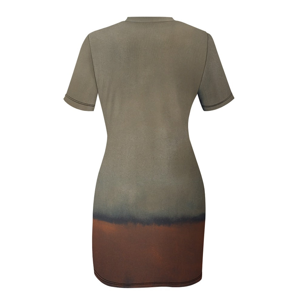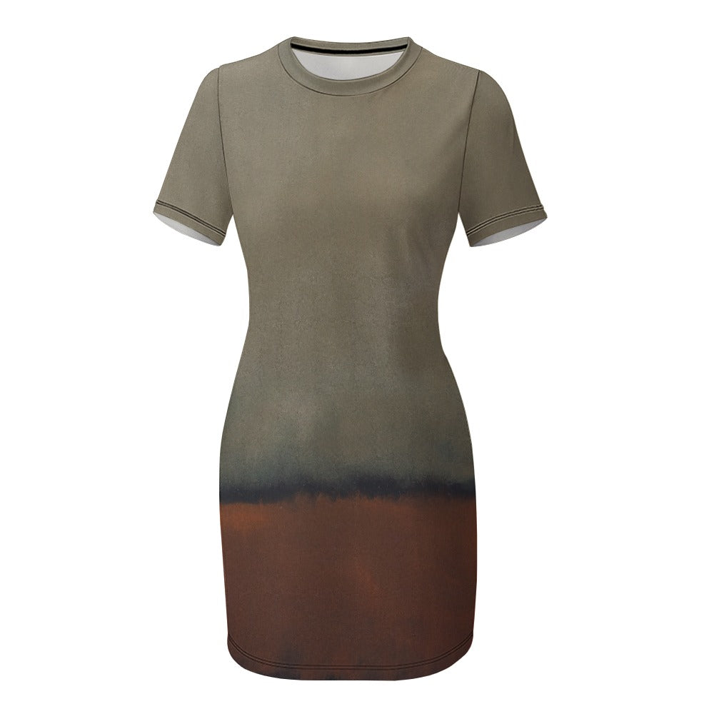 This Mark Rothko dress is a mesmerizing piece of abstract art that adds a touch of sophistication to your wardrobe. Crafted with a blend of 95% polyester and 5% spandex, this crew neck short sleeve dress offers both comfort and style.