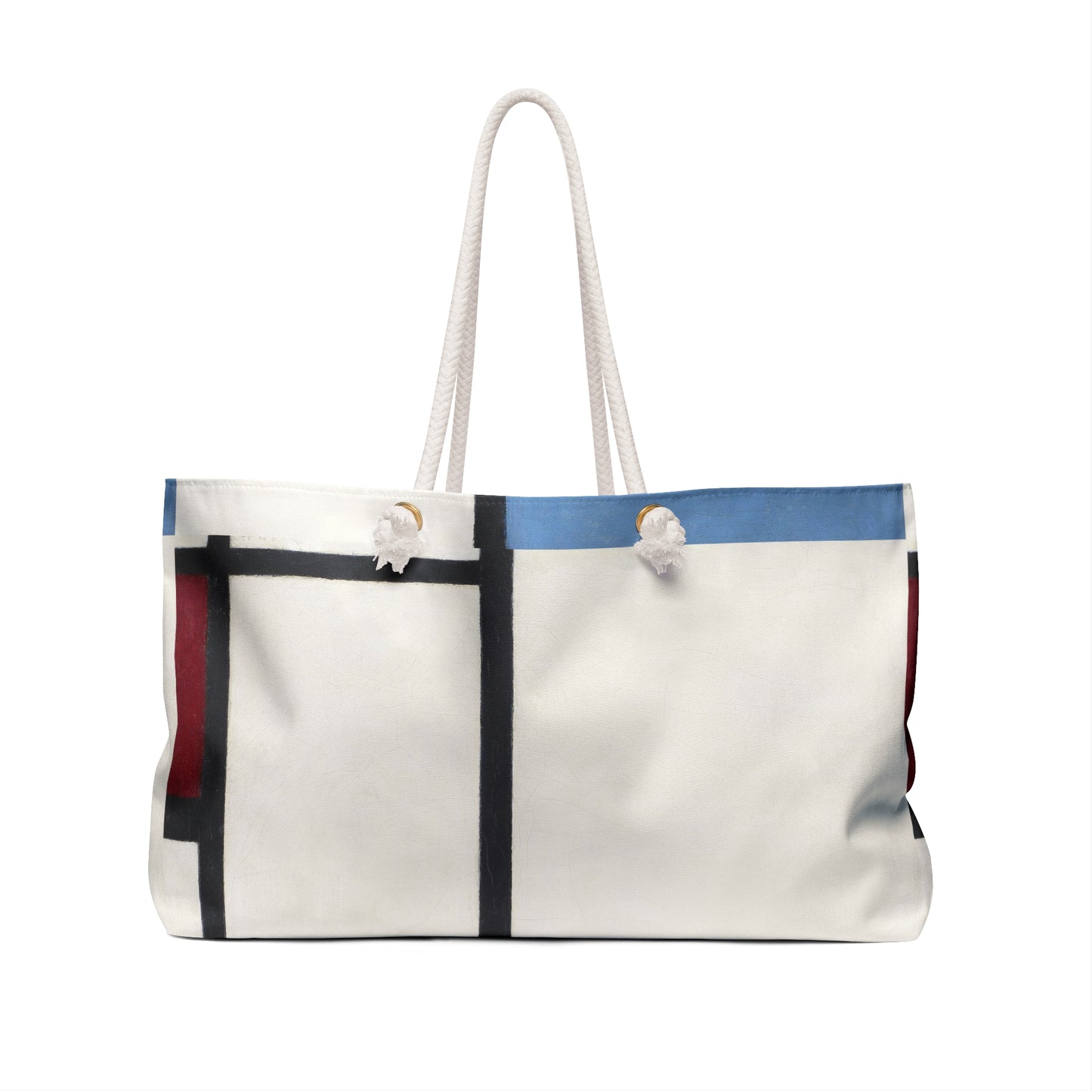 This exclusive Weekender Tote features Mondrian’s iconic Composition with Blue and Red design, adding a touch of artistry to your everyday carry-all essentials.