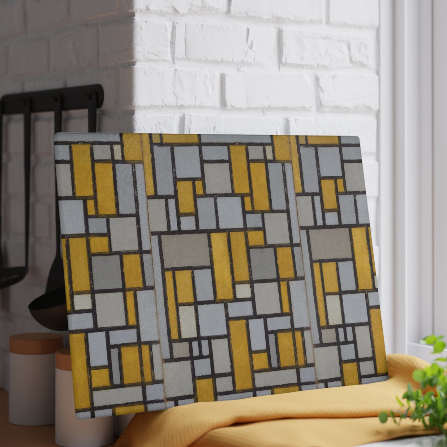 PIET MONDRIAN - COMPOSITION WITH GRID No. 1 - ART GLASS CUTTING BOARD