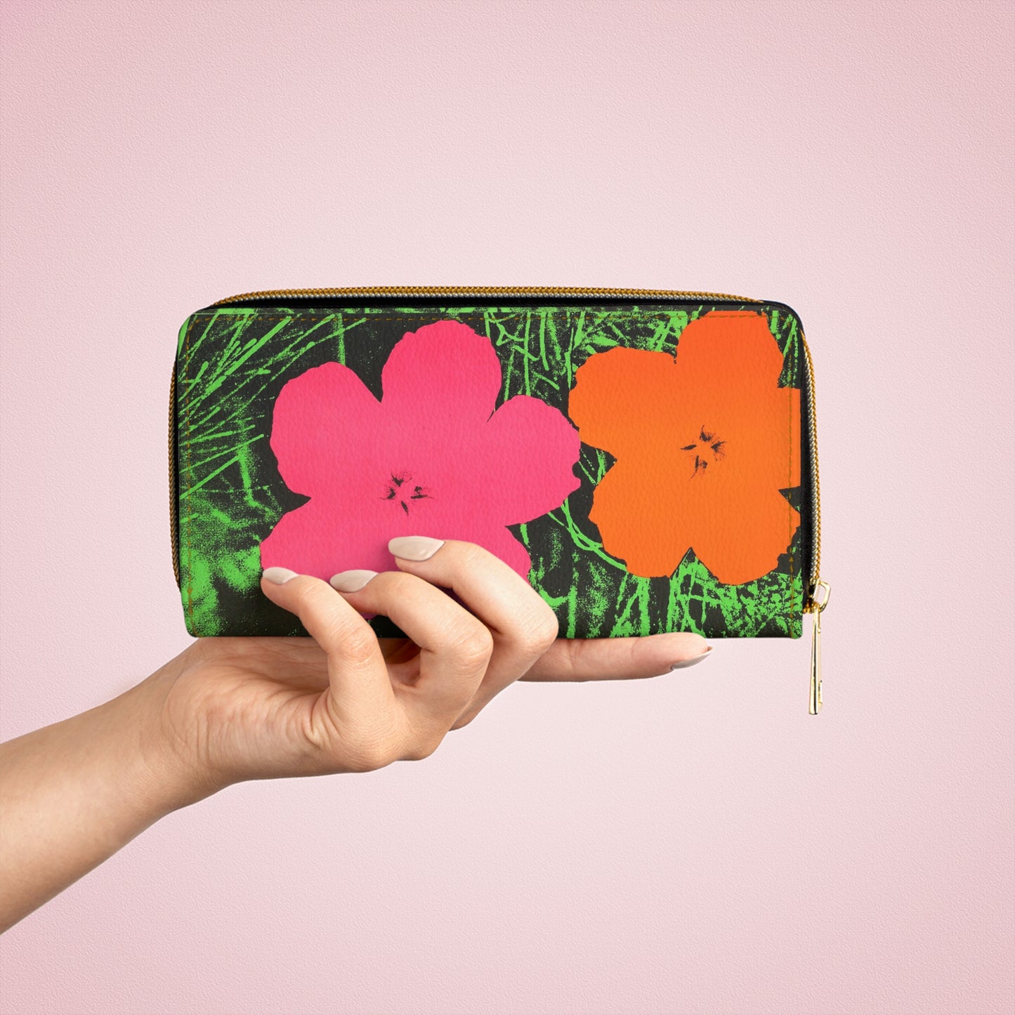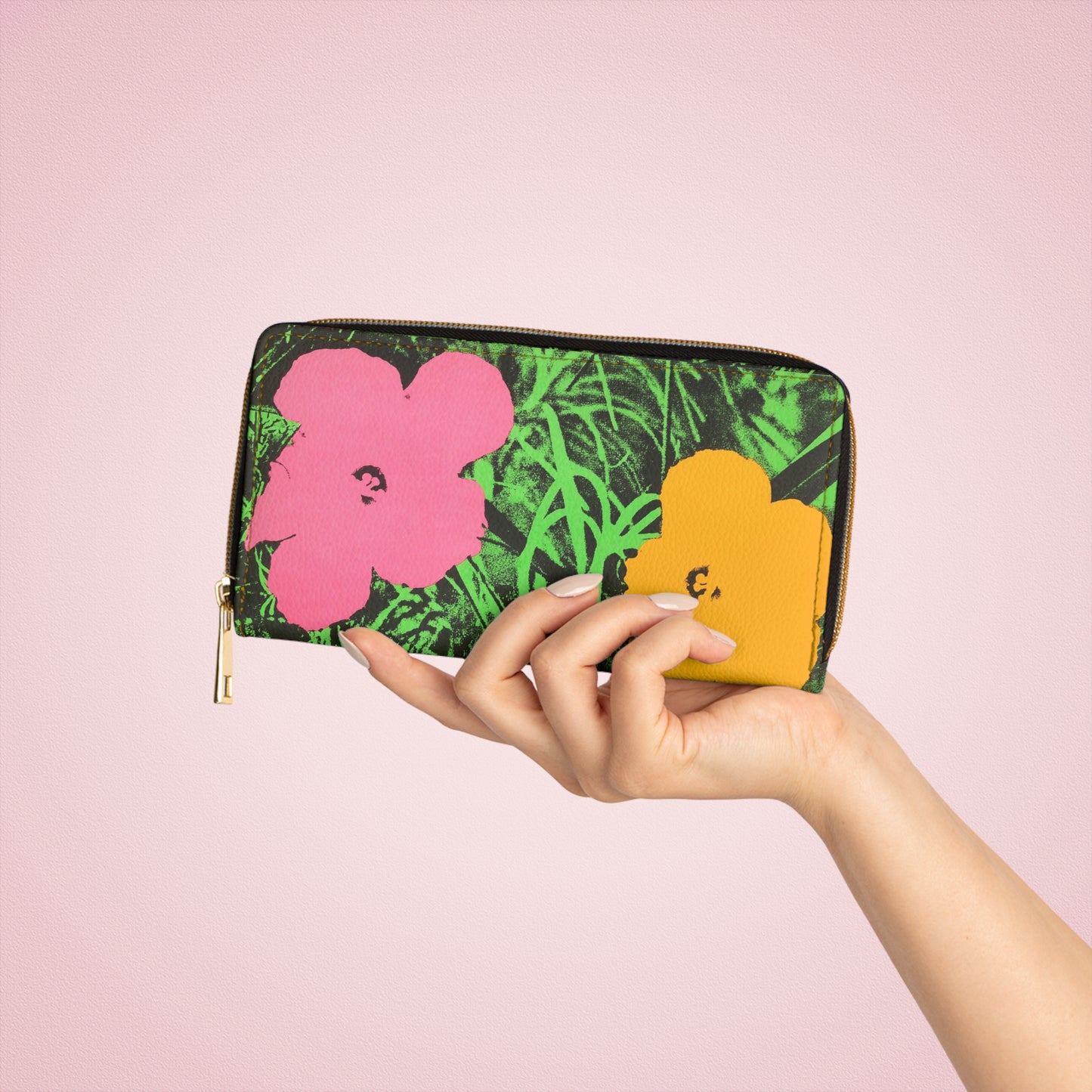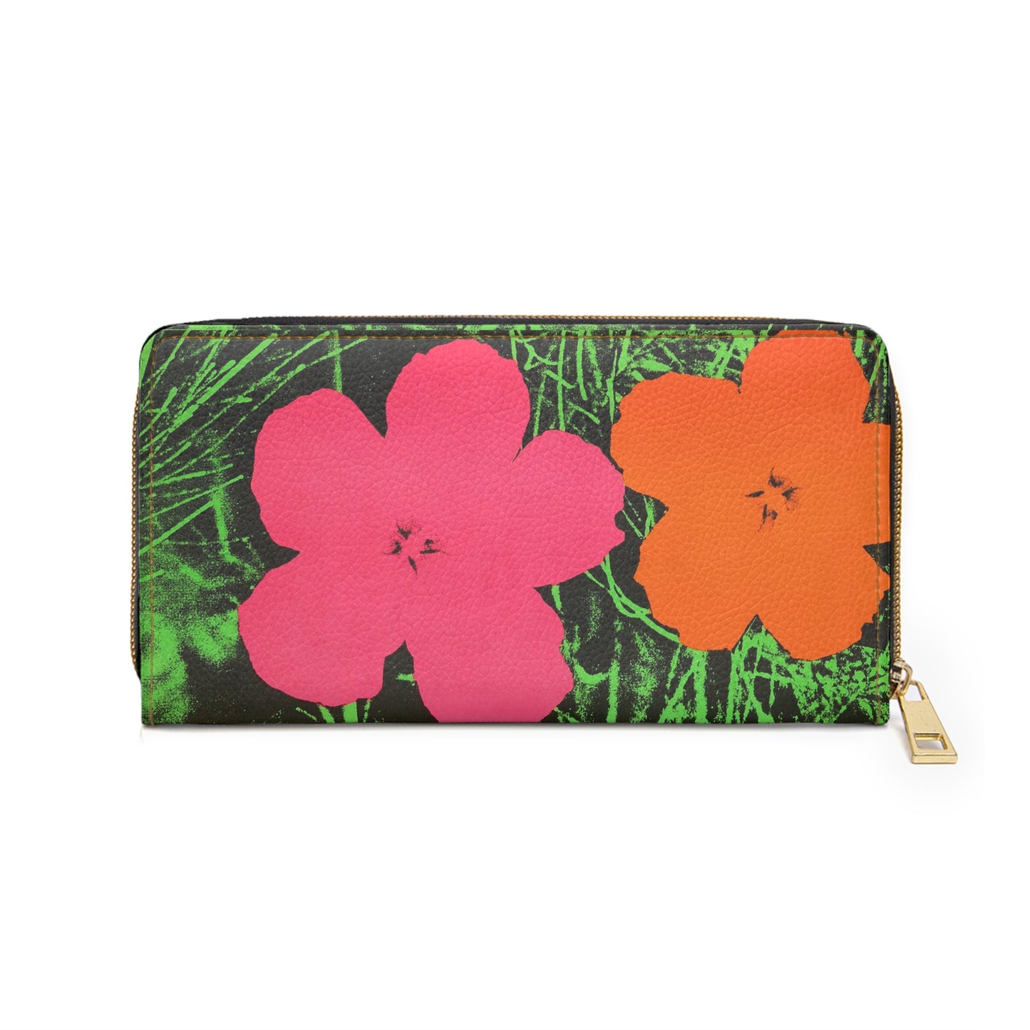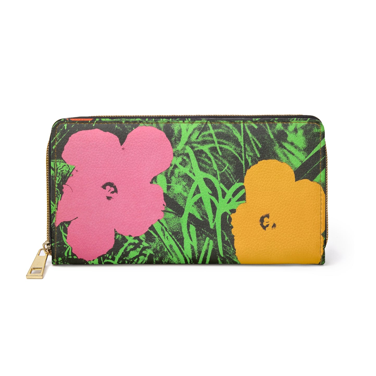 Indulge in the artistic essence of the iconic Andy Warhol with the Andy Warhol Flowers Zipper Wallet - a breathtaking accessory that celebrates both style and functionality. Crafted with precision from cruelty-free faux leather, this wallet stands out in the crowd as a symbol of artistic sophistication and practical elegance.