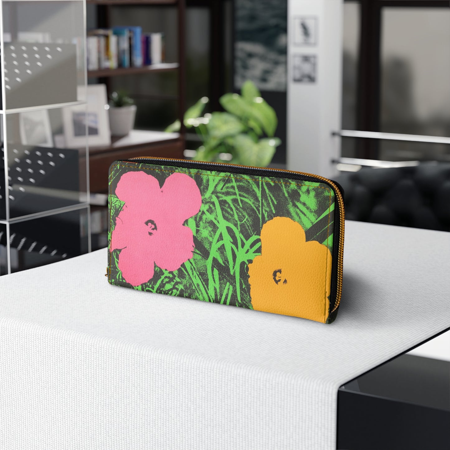 - Immerse yourself in the timeless allure of Andy Warhol's floral masterpiece with this exclusive wallet.